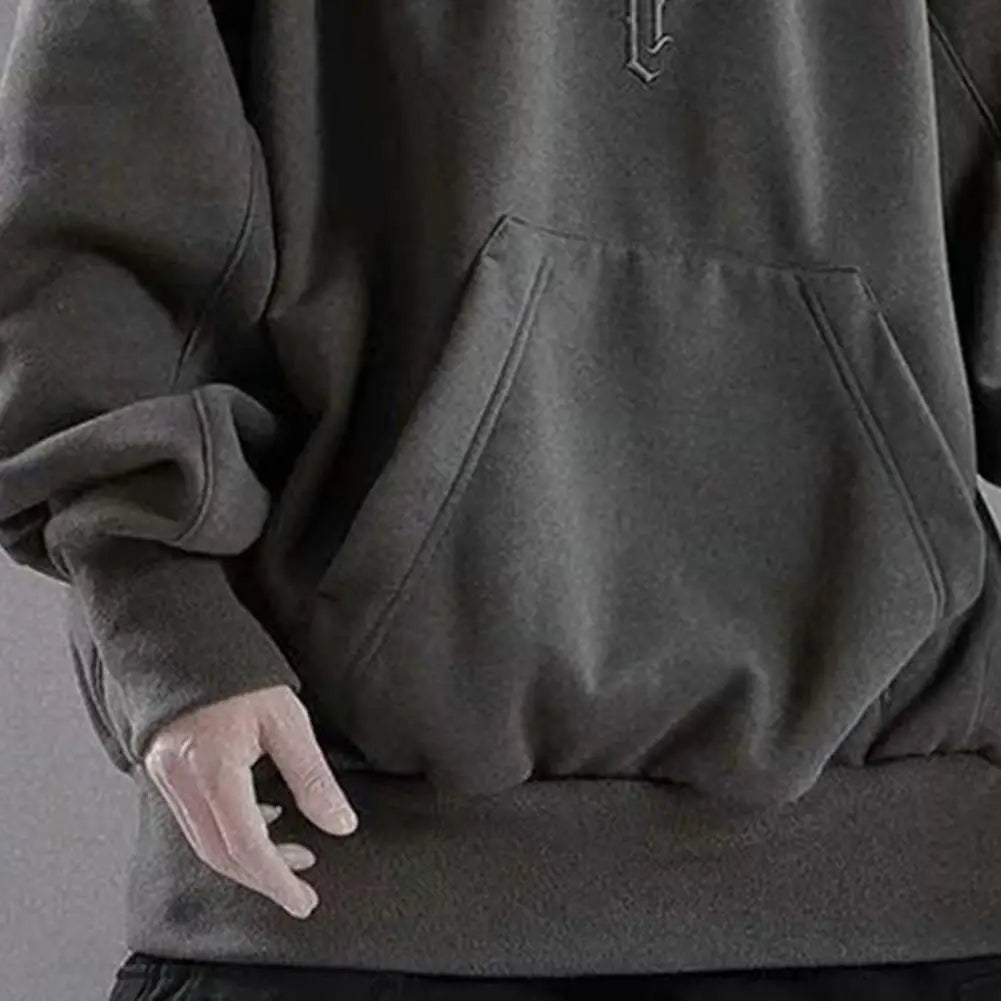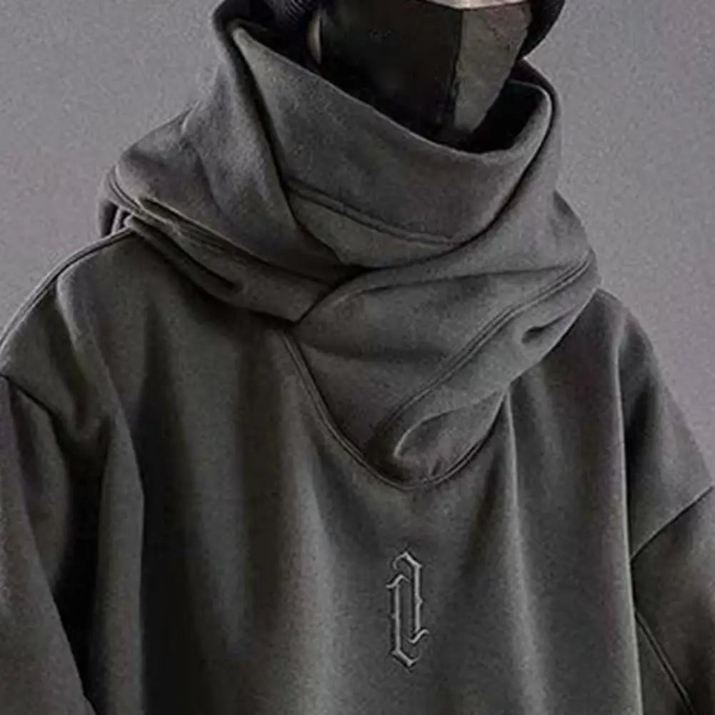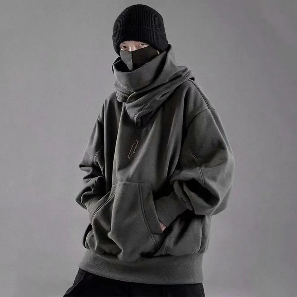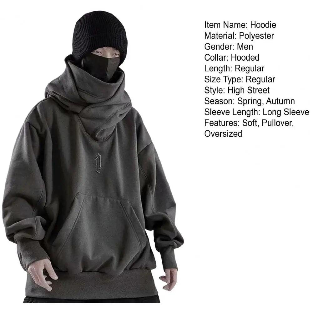 Men Autumn Hoodie Solid Color Hooded Long Sleeves Oversized Hip Hop Warm High Collar High Street Winter Hoodie Men Clothing